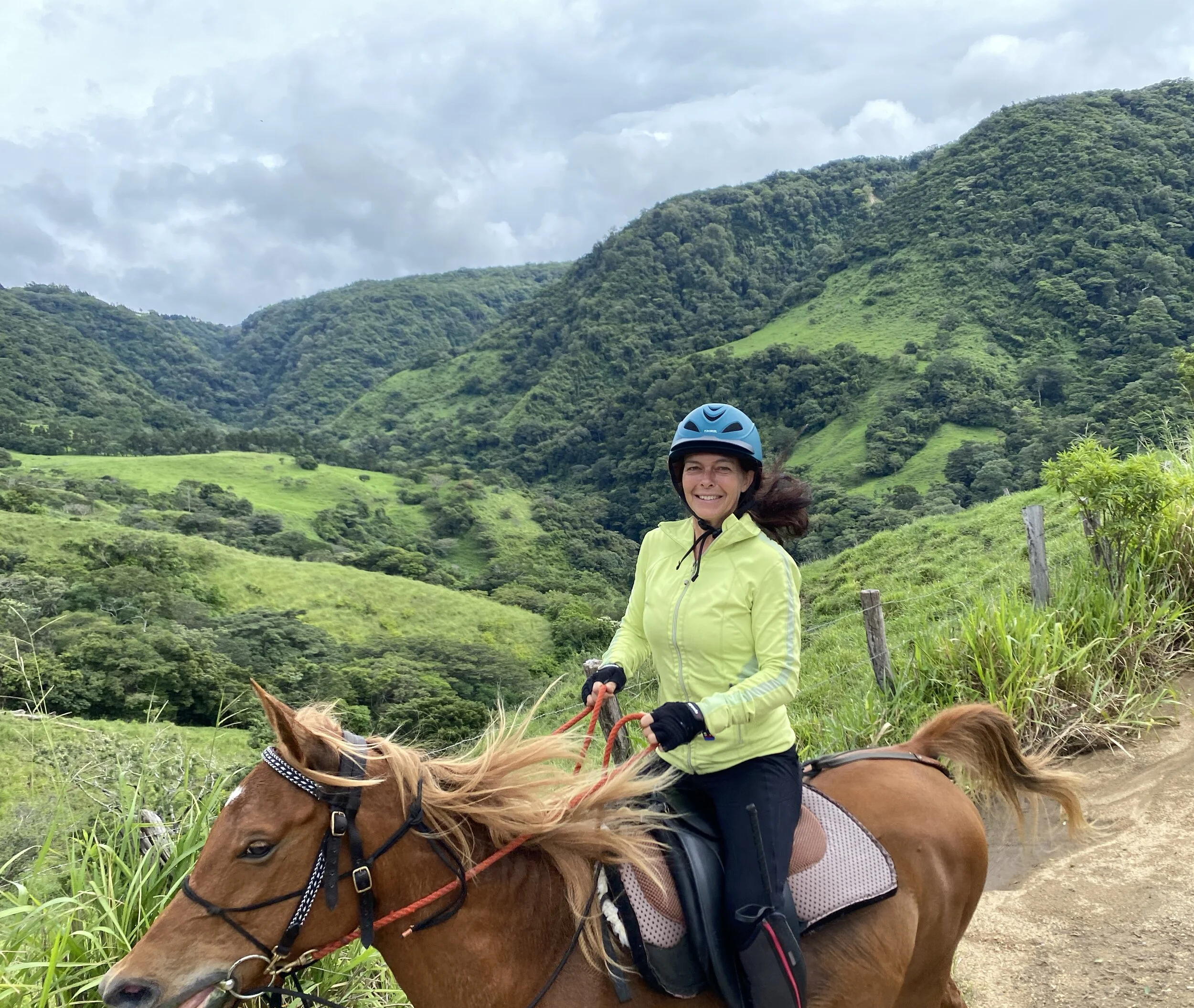 We begin the ride slowly to warm up and ensure that you are able to get to know your horse, transitioning to trot and canter depending on the terrain. Endurance riding is not about speed, but about being in the saddle over quite some time and distance — as well as listening to your horse. We take weather conditions into consideration when planning the excursion. The hours and trail conditions dictate which way we are heading out. We are close to the continental divide, so we have 3 different climate zones to ride in around our farm. The Arenal Area, The Guanacaste Area, and the Central Pacific Zone. Most of the ride is in deep local countryside with views of the country site of Guanacaste, Lake or Volcano Arenal, the windmills in Tilaran, the Volcanos up north, or the Pacific Ocean.